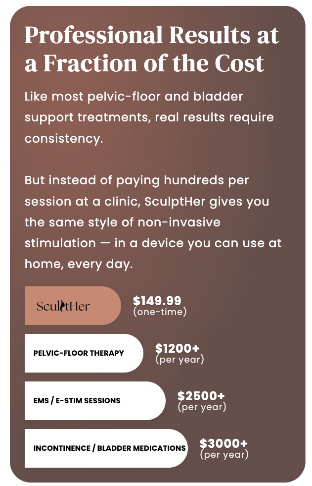 Stronger pelvic muscles can naturally improve intimate comfort and confidence — but SculptHer™ is not marketed as a “pleasure device.”